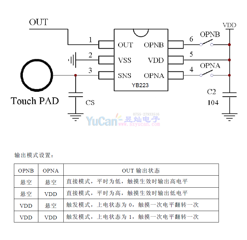 YB223/YB233系列 引腳兼容替代型號: TTP223,TTP233,RH6030,
